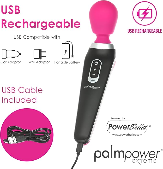 PalmPower EXTREME Cordless Rechargeable Body Wand Massager Pink